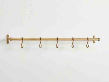 A similar brass rail with hooks for the kitchen can be purchased for $79 for the 30-inch size from Pottery Barn.