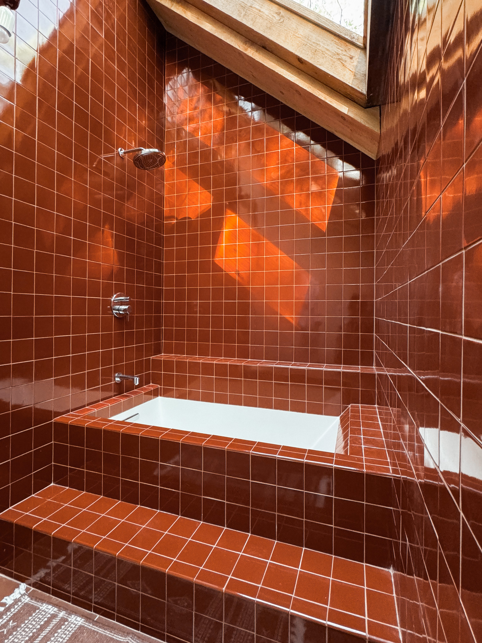 They also introduced a “Roman-style tub” and tiled the entire space in Mexican terracotta. Their goal when introducing new elements to the house was to “create something that felt as if it was meant to be.”