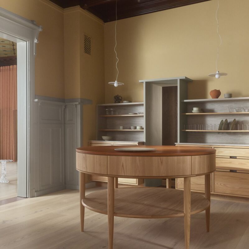 Above: Library chairs by Arne Jacobsen; Cecilie Manz orange ladder (go to Moormann for information).