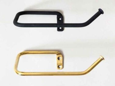 We’re always on the lookout for stylish TP holders (and other bath essentials). Our latest find: a line of rustic brass paper holders, bath hooks, and towel rails from Muro Kanamono, a metal-working atelier founded in Kyoto in 1802, currently available from Rikumo in Pennsylvania.