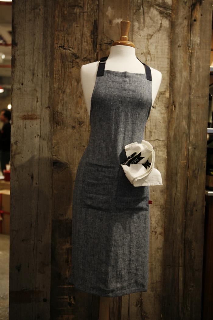 Above: One of our favorite everyday items is a sturdy apron; this $24 herringbone design has deep but subtle pockets and comes in a stain-forgiving gray.