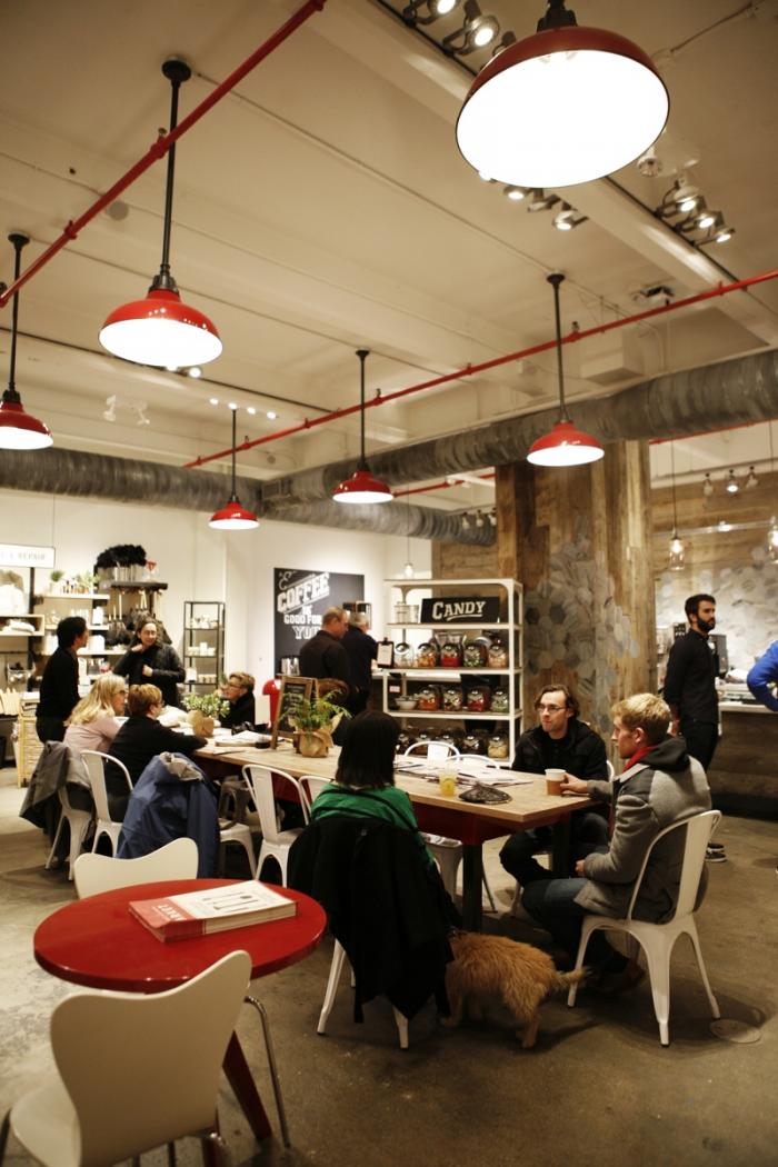 Above: The coffee-and-pastries café is run in collaboration with Philadephia-based La Colombe, known for its farm-direct, single origin beans.