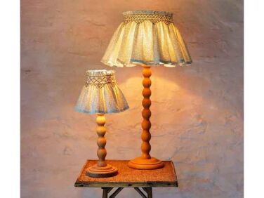 Smocked lampshades can be used with various types of lamps, including table lamps, floor lamps, and pendant lamps. The size and shape of the lampshade should complement the lamp base to ensure a cohesive and visually pleasing look.