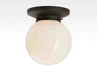 Above: The Dumais’s kitchen is small, just 150 square feet. “To help keep our renovation costs at a minimum, we used Ikea for the cabinet interiors and added plain front doors, drawers, and side panels from Semihandmade,” says Kevin.”We ordered them unfinished so we could paint them.” Charlie built the island himself. Photograph by Eric Piasecki. Above: Other DIY elements include the small surface-mounted brass ceiling fixtures, which Charlie made as “retrofits that plug into the existing recessed lighting,” he says, and the whitewashed V-groove pine paneling he installed himself. (Charlie designs and makes lighting for a living; see Studio Visit: Ceramic Statement Lighting by Dumais Made.) Photograph by Kevin Dumais. Above: Their one big splurge: the Calacatta Tucci marble counters from Stone Source. Photograph by Kevin Dumais. Above: The console table is another homemade piece. Charlie used butcher block salvaged from his childhood home; the legs are industrial piping painted in Benjamin Moore White Dove enamel. Photograph by Kevin Dumais.