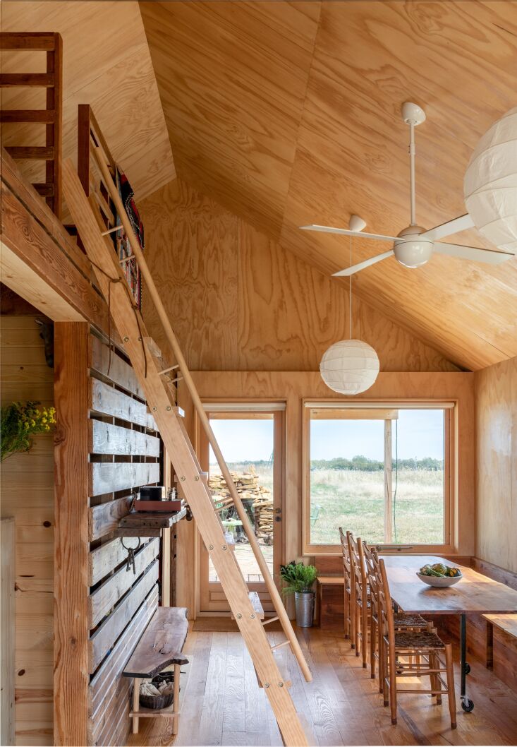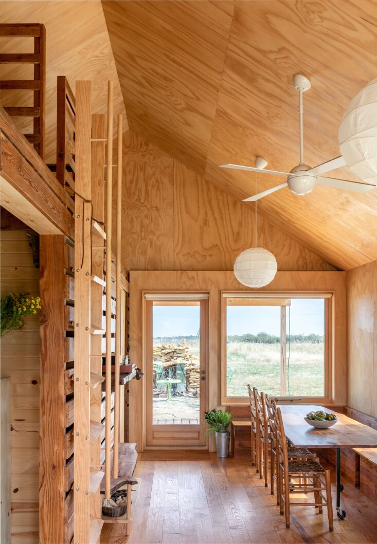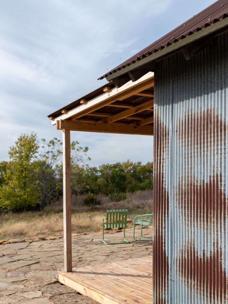 The farm—corn and beans are its main crops—has been in his wife Mary Anne’s family since 1961. During the COVID pandemic, their son took to camping with his friends on the property, just an hour and a half from Kansas City, where the family resides. Inspired by his escapes, the couple decided to restore the barn—”the only remaining vertical structure on the farm,” says Steve—and turn it into their little house on the prairie.