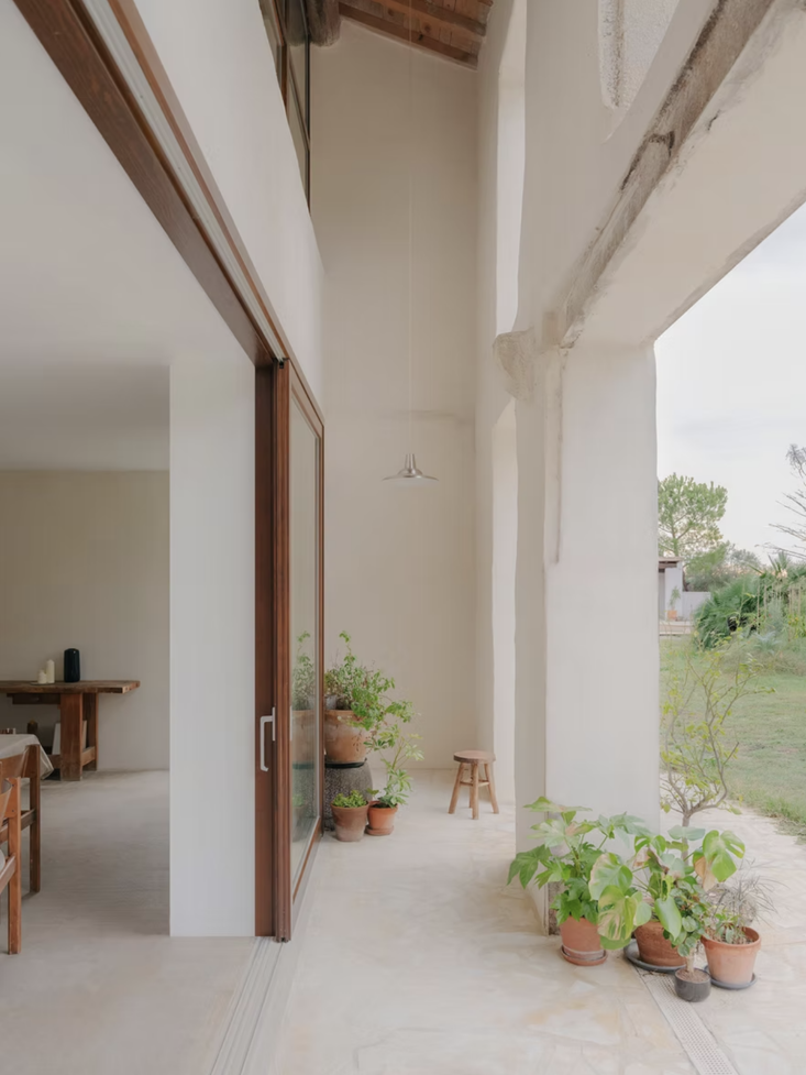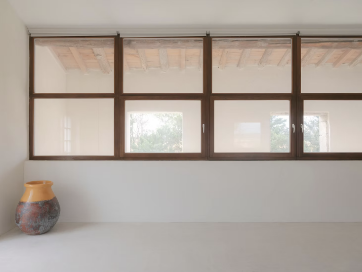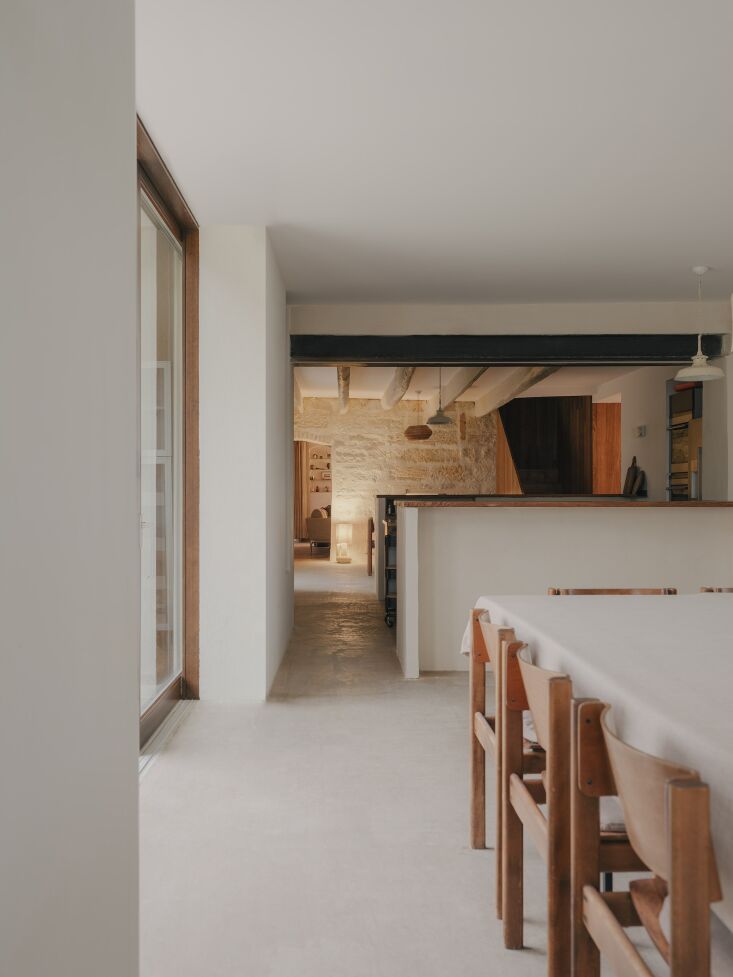 As the house is located within the Parc naturel régional de Camargue, all modifications were tightly controlled. They achieved thermal efficiency without the use of air conditioning and installed a heat pump for radiant heating. Solar panels were installed to the roof and insulated the roof using rice straw from the surrounding Camargue region, chosen for its insulating properties and local, low-impact origin. The straw is dried, lightly compacted (10-centimeter slats), and inserted between timber framing elements in the roof before being protected with a breathable membrane to ensure durability and to prevent moisture issues.