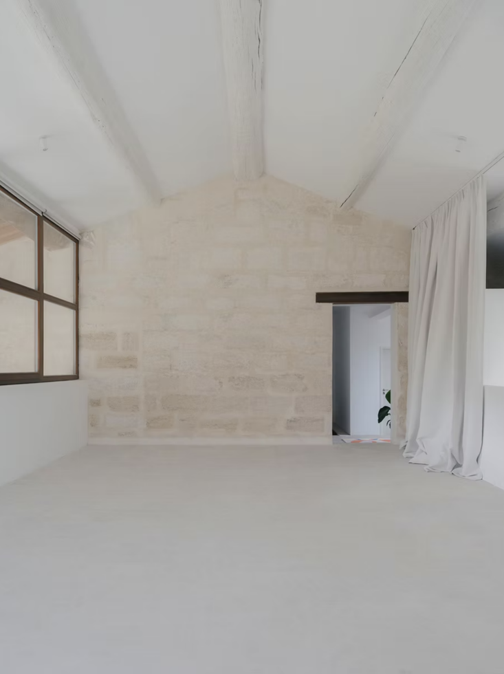 The owners knew from the start that the property would function as more than just their residence, and would be centered around environmental sustainability. The Mas Baudran artist residency project emerged as the initial plans were drawn. Their aim is to raise awareness and engage the general public on issues related to environmental preservation and climate protection through artistic creation, agroecology, and the interdisciplinary exchange among artists, lawyers, scientists, and activists. The artist residency includes a reception room, ceramics workshop, a multipurpose room for resident artists, and a main bedroom.