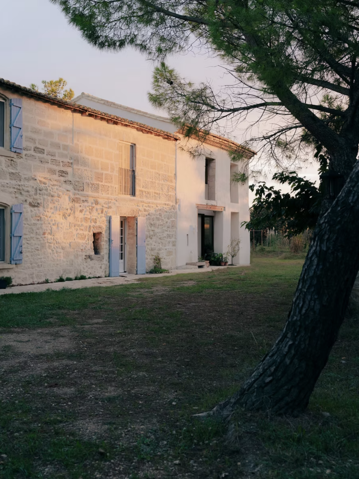 Owners Sébastien, an environmental lawyer, and Sofian, a hairstylist-turned-ceramicist, moved permanently from Paris to the Arles farmhouse in 2021. Sofian had been the hairstylist for both Weill and Paradis before enlisting their practice for the project. The initial request was to renovate the house. “They were looking for more bedrooms, more space to entertain, an office for Sébastien’s remote work, and a ceramics workshop for Sofian’s own training,” Weill explains.