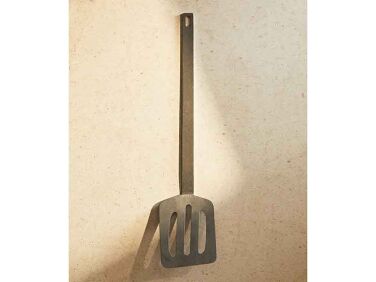 Above: A sink setup we want to emulate. An array of stonewashed steel utensils hangs at left: the Spatula, Spoon, Skimmer, Ladle, and Fork are all currently on sale; $20.72 each. On the drainboard are the Small Stemmed Glasses ($69.90 for a set of two) and the Medium Tumblers ($49.90 for a set of two), both created in collaboration with Serax. The amber Small Glasses With Bubbles on the shelf are currently on sale for $7.92 each.