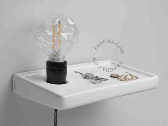 A clip-on light that can be used in various places. You can freely change the direction of the shade. The switch is attached to the top of the shade. The material is an aluminum base that gains flavor as you use it. Can be used up to 25w. Compatible with LED bulbs.