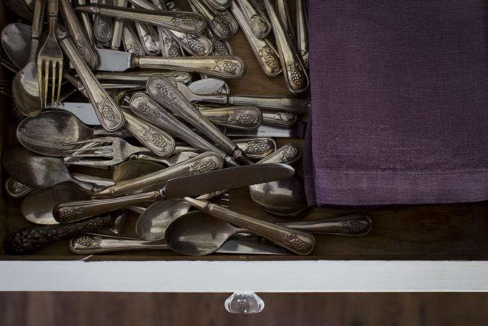 Photograph by Mimi Giboin. My fancy flatware (inherited from my husband’s family) is coddled already, in a kitchen drawer.